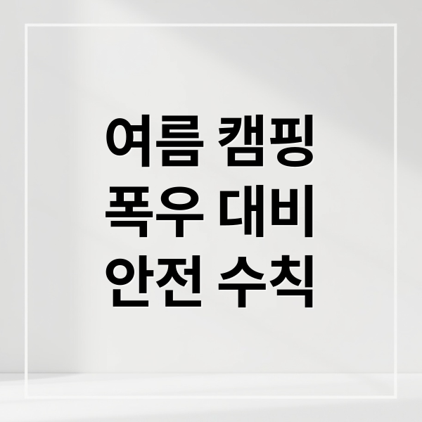 여름 캠핑, 폭우 대비는 안전을 지키는 필수 준비입니다. 기상 상황 확인, 안전한 장소 선택, 대피 계획 수립을 통해 안전하고 즐거운 여름 캠핑 추억을 만드세요!