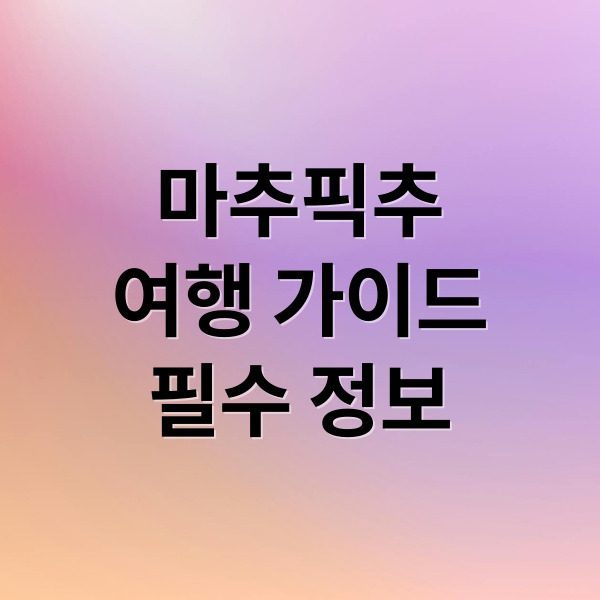 마추픽추 여행, 이제 꿈이 아닌 현실로 만들 준비가 되셨나요? 이 글에서 소개한 마추픽추의 역사, 가는 방법, 주변 명소, 그리고 인생샷 명소 정보들을 통해 잊지 못할 추억을 만드시길 바랍니다. 지금 바로 마추픽추 여행 계획을 세우고, 잉카 문명의 신비를 직접 경험해 보세요!